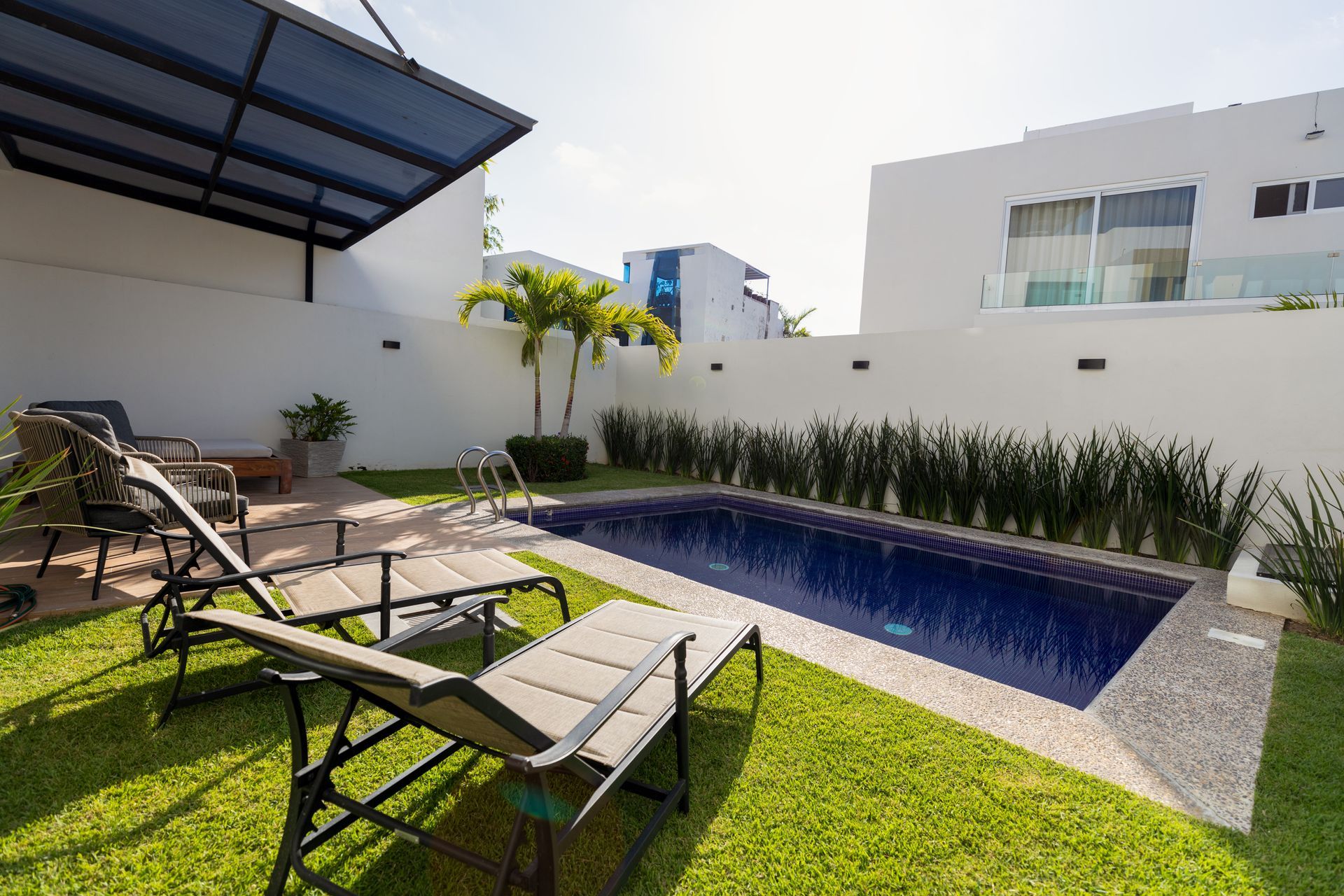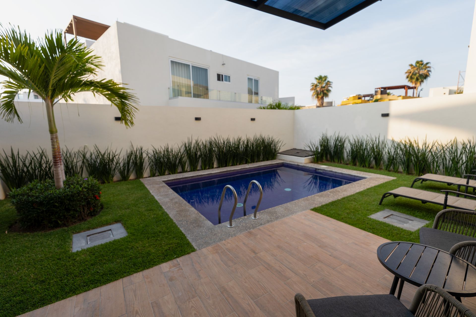 Casa en B nayar 109, nueva, hermosa, amplios espacios , alberca, roof garden y comodidad en las instalaciones y con acceso a club de playa a unos metros, 4 recamaras( uno en planta baja sin desnivel), 4 baños completos para tu comodidad, acceso a club de playa.Alberca, roofgarden y club de playa a unos metros.En la renta de la casa incluye el acceso gratuito al club de playa 6 huéspedes.